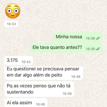 Toque nos prints para ver a conversa real, exatamente como aconteceu no WhatsApp.